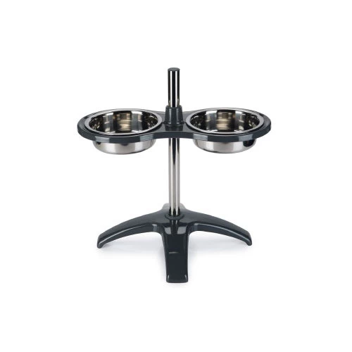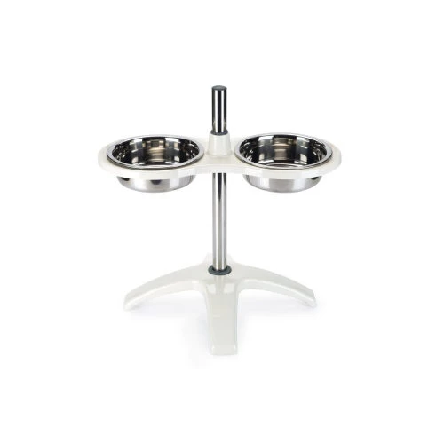 Beeztees verstellbarer Napfständer Orino ist ein schöner Ständer, der aus Kunststoff gefertigt ist. Der Futterständer enthält 2 Futternäpfe aus rostfreiem Edelstahl. Diese Näpfe können Sie in der Höhe von 12 cm bis 50 cm verstellen. Hierdurch kann Ihr Hund in einer entspannten, stehenden Haltung fressen oder trinken.