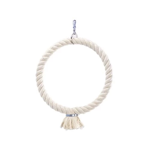 Hängen Sie den Ring in den Käfig Ihres Papageis oder Sittichs und bereiten Sie ihm viel Freude. Der Spielring ist aus fester Baumwolle und lässt sich mit einem Haken leicht befestigen; in verschiedenen Größen erhältlich.