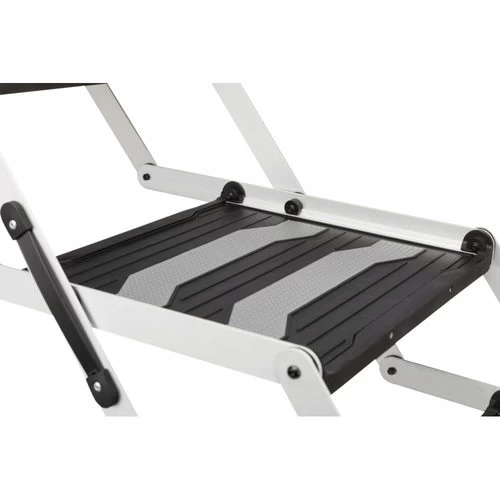 Wenn Sie Ihren Hund oft mit ins Auto nehmen oder wenn er seine Gelenke aus großen Höhen oft belasten muss, dann ist die Klapptreppe von Trixie eine gute Lösung. Die Treppe kann leicht ausgeklappt werden, um eine Treppe zu bilden. Diese Funktion erleichtert das Zusammenklappen und die Treppe kann problemlos am Griff getragen werden. Durch die rutschfeste Schicht rutscht Ihr Hund nicht so leicht. Die Treppe besteht aus Aluminium und Kunststoff und ist leicht zu reinigen.