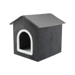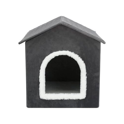 Trixie Livia ist ein Haus, in dem Ihr Hund sich zurückziehen kann, wenn er seine Ruhe haben möchte. Die Hundehütte hat eine Polyester-Plsterung und einen Velours/Plüsch-Look. Das Haus ist zusammenfaltbar, so dass es auf Reisen leicht mitgenommen werden kann. Die Unterseite ist mit rutschfestem Material ausgestattet, damit es nicht so schnell verrutscht.