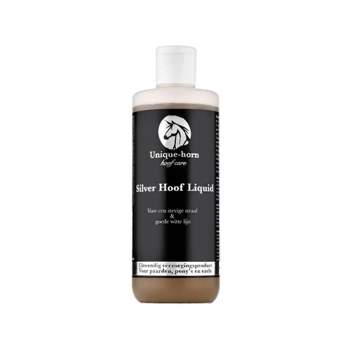 Unique-horn Silver Hoof Liquid wurde speziell entwickelt, um einen festen Radius und eine gute weiße Linie der Hufe von Pferden, Ponys und Eseln zu unterstützen. Dieses Produkt unterstützt eine gute Hufgesundheit.